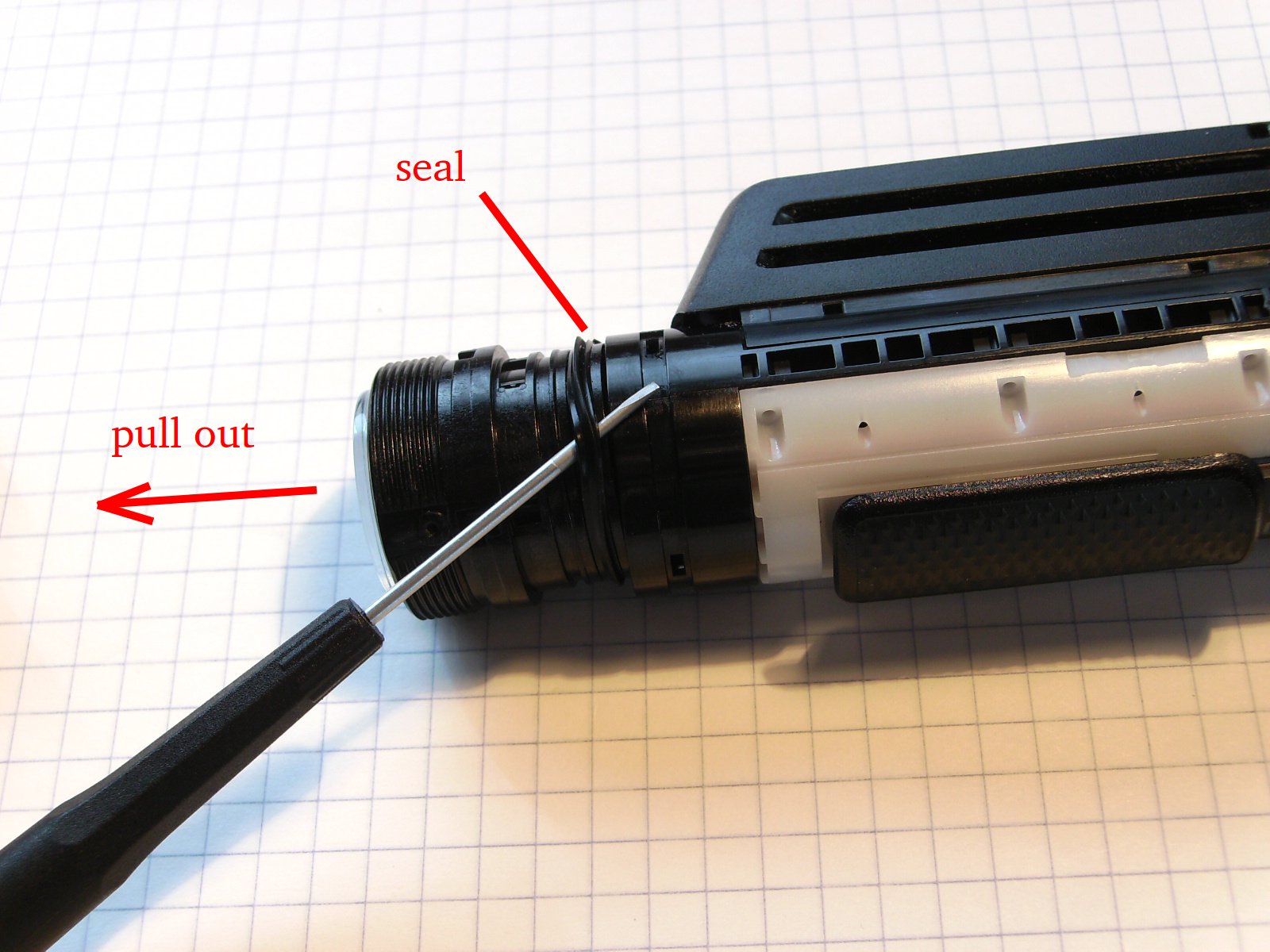Slowly pull out the lens barrel far enough to expose the rubber seal: