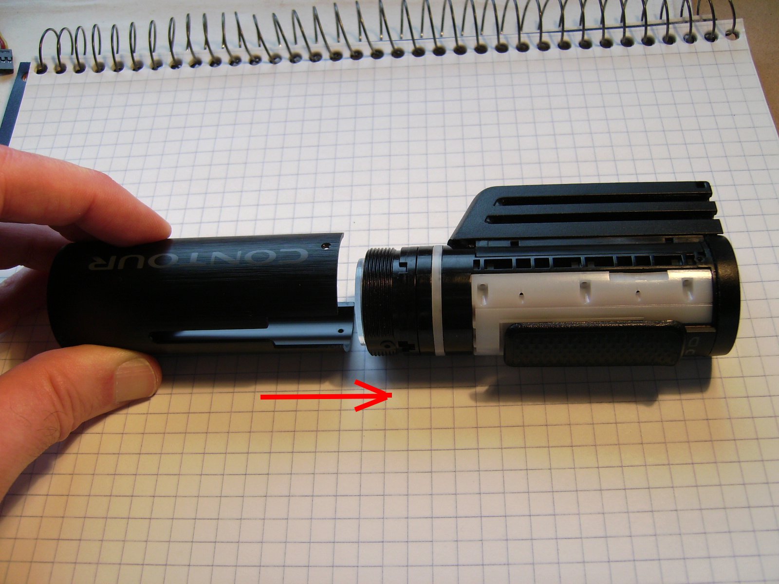 Unscrew the lens cover and slide off the barrel cover: